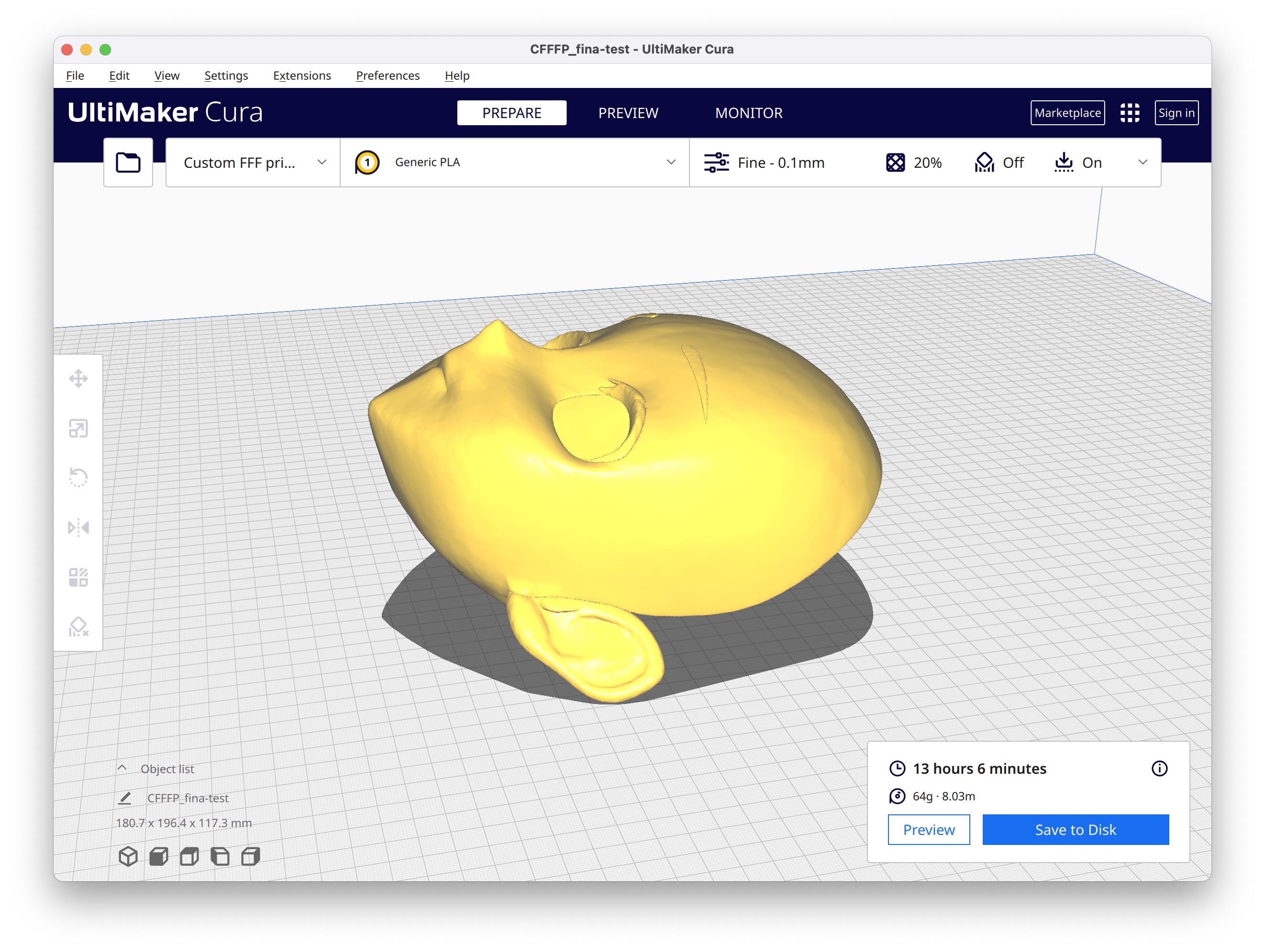 - 打印过程时间比较长,我新打印的头壳不到 700g 的东西,也需要 22个小时;