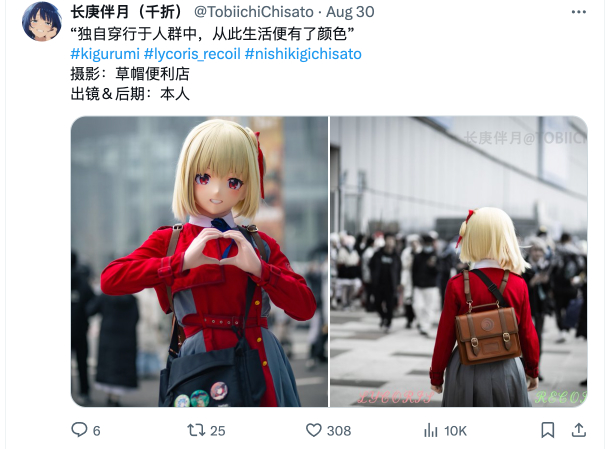 - 通过佩戴面具、人偶装、假发等道具,将自己的外貌完全隐藏,以此来扮演动漫、游戏、虚拟角色。